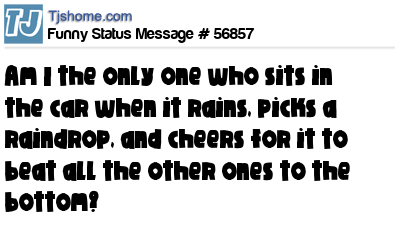 X Am I the only one who sits in the car when it rains, picks a raindrop, and cheers for it to beat all the other ones to the bottom?