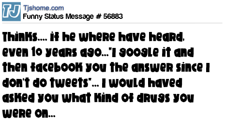 X thinks.... if he where have heard, even 10 years ago..."I google it and then facebook you the answer since I don't do tweets"... I would haved asked you what kind of drugs you were on...