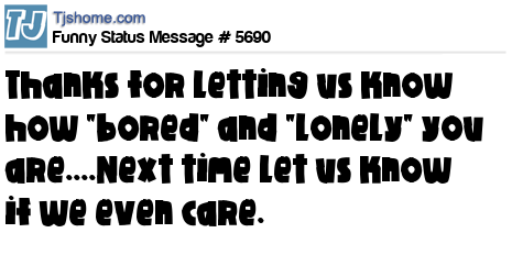 X says Thanks for letting us know how "bored" and "lonely" you are....Next time let us know if we even care.
