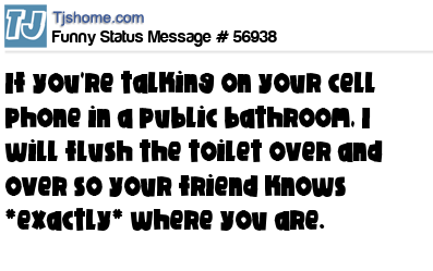 - # 59212 If you're talking on your cell phone in a public bathroom, don't get mad at me when I flush the toilet over and over so your friend knows *exactly* where you are.