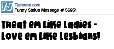 - # 71433 My one and only wish is for all the pretty lesbians to turn straight and all the ugly lesbians to remain lesbians.