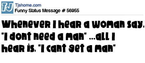 X is Whenever I hear a woman say, "I dont need a man" ...all I hear is, "I cant get a man"