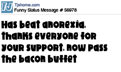 X is has beat anorexia, thanks everyone for your support, now pass the bacon buffet