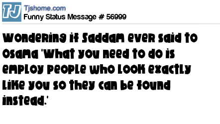 X is wondering if Saddam ever said to Osama 'What you need to do is employ people who look exactly like you so they can be found instead.'