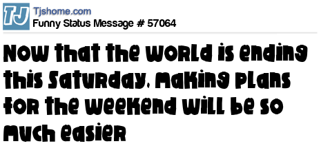 X says Now that the world is ending this Saturday, making plans for the weekend will be so much easier