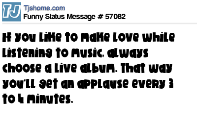 - # 164768 If you like having sex while listening to music -- always choose a live album. That way you'll get an applause every 3 to 4 minutes.