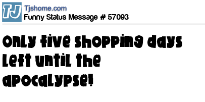 - # 119156 FYI - Only seven more shopping days until the apocalypse! Plan your looting accordingly...