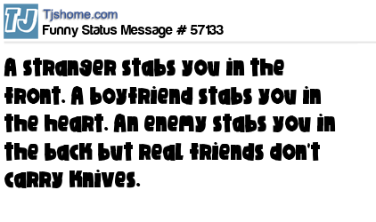 - # 154097 Some people say a true friend stabs you in the front. I’m gonna go ahead and say a true friend just puts the knife down.