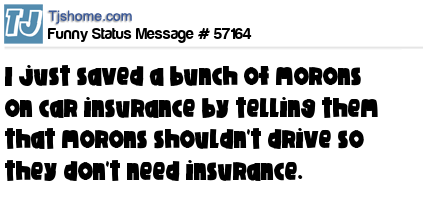 X is I just saved a bunch of morons on car insurance by telling them that morons shouldn't drive so they don't need insurance.