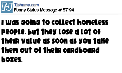 - # 83646 Homeless people wouldn't be half as poor if they didn't waste all of their money on sharpies and cardboard.