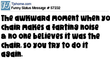 X is The awkward moment when your chair makes a farting noise & no one believes it was the chair, so you try to do it again.
