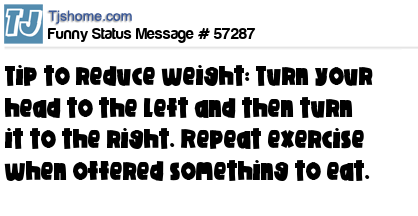 - # 62816 Tip to reduce weight: Turn your head to the left now turn it to the right. Repeat this exercise every time you are offered something to eat.