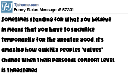 X Sometimes standing for what you believe in means that you have to sacrifice temporarily for the greater good. It's amazing how quickly peoples "values" change when their personal comfort level is threatened