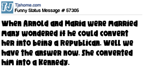 X When Arnold and Maria were married many wondered if he could convert her into being a Republican. Well we have the answer now, She converted him into a Kennedy.