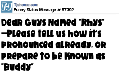 X Dear Guys Named "Rhys" --Please tell us how it's pronounced already, or prepare to be known as "Buddy"