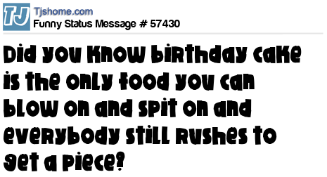 X says Did you know birthday cake is the only food you can blow on and spit on and everybody still rushes to get a piece?