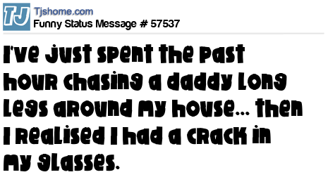 X says I've just spent the past hour chasing a daddy long legs around my house... then I realised I had a crack in my glasses.
