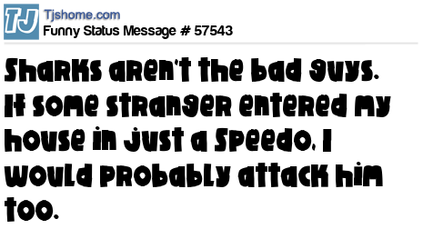 - # 138022 You can't really blame sharks for attacking swimmer. If some random guy walked into my house wearing nothing but speedos, I'd probably attack him as well!