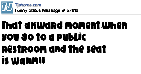 X is that akward moment,when you go to a public restroom and the seat is warm!!