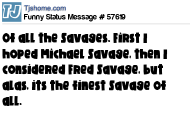 X Of all the Savages. First I hoped Michael Savage, then I considered Fred Savage, but alas, its the finest Savage of all.