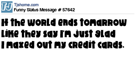 X is If the world ends tomarrow like they say I'm just glad I maxed out my credit cards.