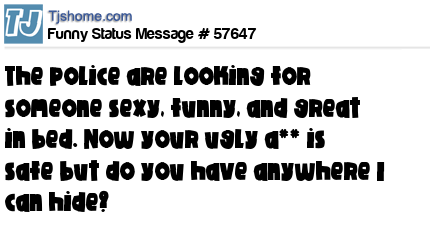 X The police are looking for someone sexy, funny, and great in bed. Now your ugly a** is safe but do you have anywhere I can hide?