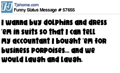 X I wanna buy dolphins and dress 'em in suits so that I can tell my accountant I bought 'em for business porpoises... and we would laugh and laugh.