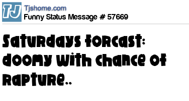 - # 88415 Todays forcast is sarcastic with a 60% chance of STFU!! Now to Bob with sports....