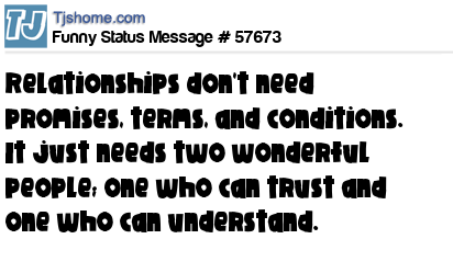 X is Relationships don't need promises, terms, and conditions. It just needs two wonderful people; one who can trust and one who can understand.
