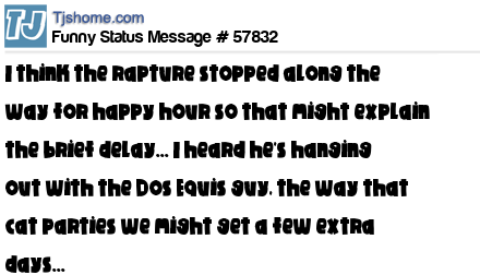 X is I think the rapture stopped along the way for happy hour so that might explain the brief delay... I heard he's hanging out with the Dos Equis guy, the way that cat parties we might get a few extra days...