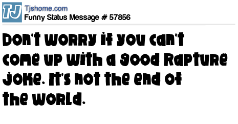 X is Don't worry if you can't come up with a good Rapture joke. It's not the end of the world.