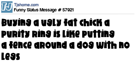 X is Buying a ugly fat chick a purity ring is like putting a fence around a dog with no legs