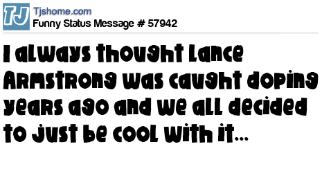 - # 122032 Lance Armstrong cheated this whole time? Well I still think it's cool he was the first man to ride a bike on the moon!