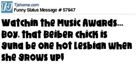 - # 69791 Justin Beiber always sings about girls, she must be a lesbian