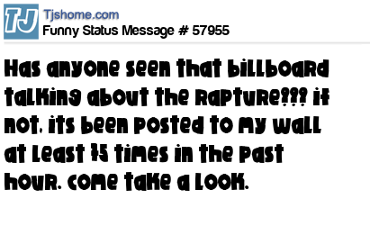 X  has anyone seen that billboard talking about the rapture??? if not, its been posted to my wall at least 75 times in the past hour. come take a look.