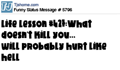 X says Life lesson #427:What doesn't kill you... will probably hurt like hell