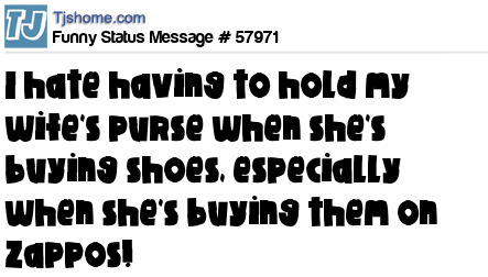 X says I hate having to hold my wife's purse when she's buying shoes, especially when she's buying them on Zappos!