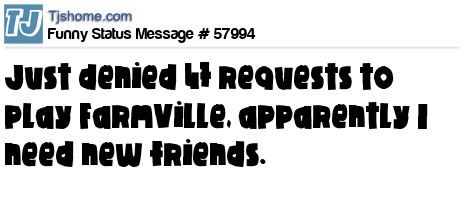 X has Just denied 47 requests to play FarmVille, apparently I need new friends.