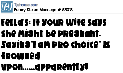 X is Fella's: If your wife says she might be pregnant. Saying"I am pro choice" Is frowned upon......apparently!