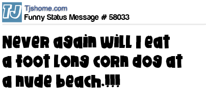 X says Never again will I eat a foot long corn dog at a nude beach.!!!