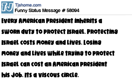 X is Every American President inherits a sworn duty to protect Israel. Protecting Israel costs money and lives. Losing money and lives while trying to protect Israel can cost an American president his job. Its a viscous circle.