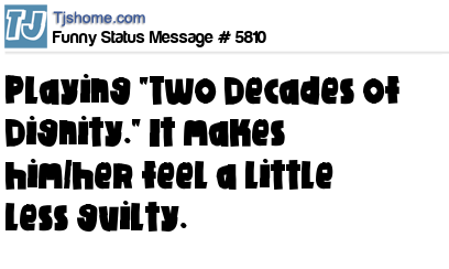 X is playing "Two Decades of Dignity." It makes him/her feel a little less guilty.