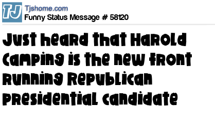 X just heard that Harold Camping is the new front running Republican presidential candidate