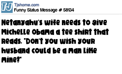 X says Netanyahu's wife needs to give Michelle Obama a tee shirt that reads, "Don't you wish your husband could be a man like mine?"