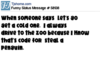 X When someone says “let's go get a cold one,” I always drive to the zoo because I know that's code for “steal a penguin.”