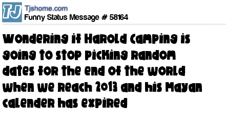 X is wondering if Harold Camping is going to stop picking random dates for the end of the world when we reach 2013 and his Mayan calender has expired
