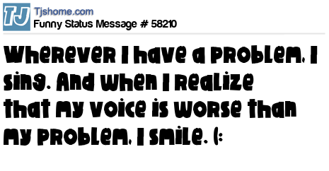 X is Wherever I have a problem, I sing. And when I realize that my voice is worse than my problem, I smile. (:
