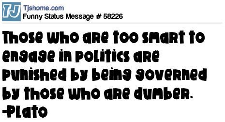 X is Those who are too smart to engage in politics are punished by being governed by those who are dumber. -Plato