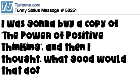 X I was gonna buy a copy of 'The Power of Positive Thinking', and then I thought, what good would that do?