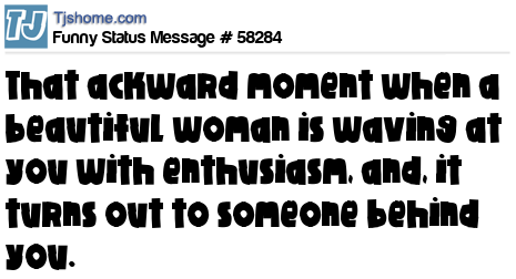 X is That ackward moment when a beautiful woman is waving at you with enthusiasm, and, it turns out to someone behind you.
